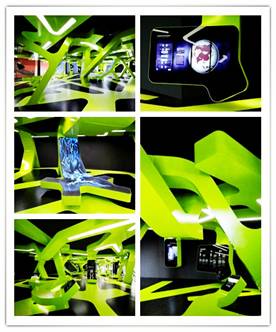 4、展廳科技設(shè)計。通過科幻式的空間布置、高科技的聲光控制以及金屬、玻璃等裝飾材料的運用,使人聯(lián)想到展示對象的科技含量。科技式的創(chuàng)意設(shè)計對于一些高新技術(shù)行業(yè)的產(chǎn)品展廳設(shè)計更是不可缺少的元素。