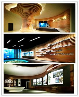 3、展廳文化設(shè)計。通過空間形象塑造將某種文化氛圍或色彩符號運用于空間設(shè)計之中,創(chuàng)造出在某種文化氛圍下的展廳環(huán)境,讓觀展者的情緒受環(huán)境的影響,對展示品及展品所屬的地區(qū)或企業(yè)的理解加深,從而對展品留下深刻的印象。